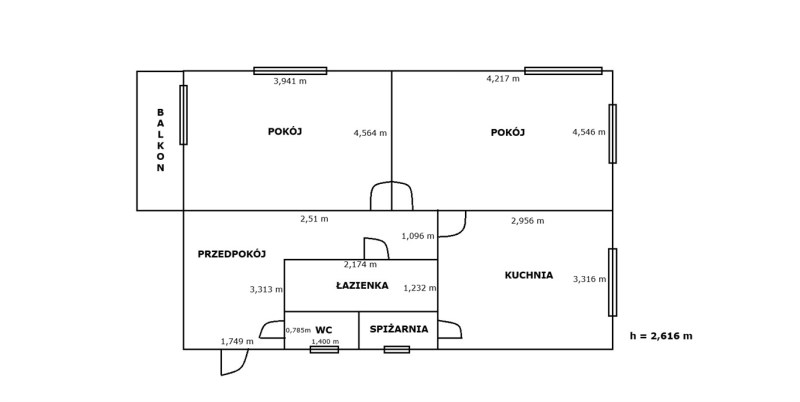 Wymiary pomieszczeń: