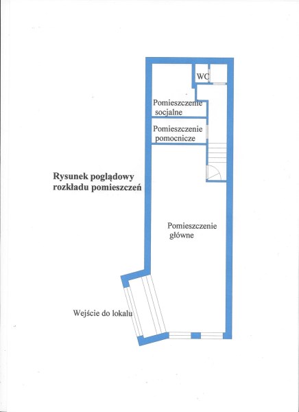 ROZKŁAD: wejście bezpośrednio z ulicy - sala główna (pow.ok.50mkw), 1/2 kondygnacji niżej - 2 pomieszczenia socjalne, wc.