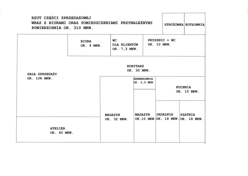1. sala sprzedaży pow. ok. 108 m (9 x12 m)