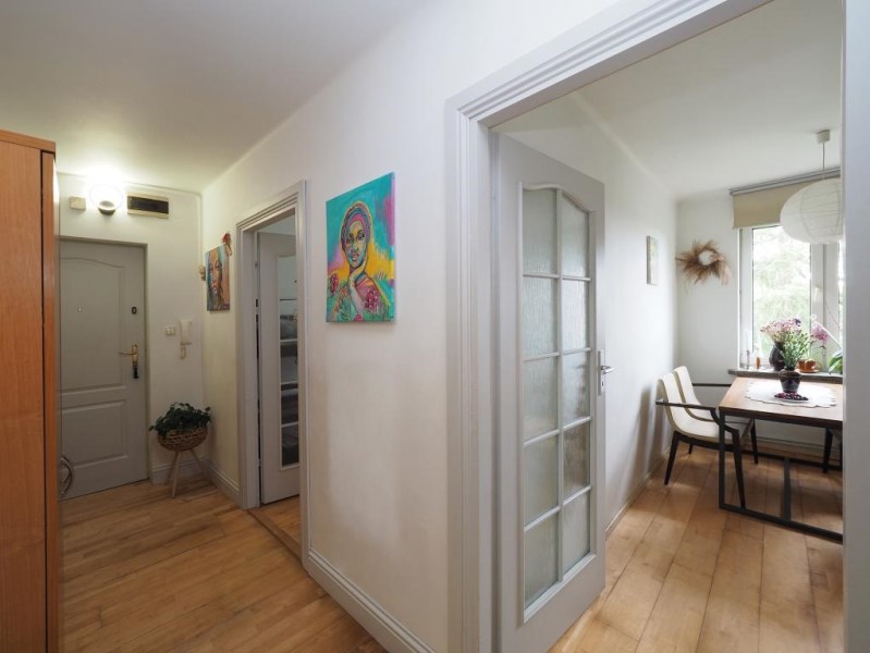 Słoneczne mieszkanie z pięknym widokiem z kuchni i sypialni na Trzy Lipki (naturalne światło przez cały dzień), zlokalizowane jest na 2 piętrze (ostatnim) 2 piętrowego bloku wybudowanego w 1960 r., który przeszedł termomodernizację w 2007 r.; Przed wejściem do budynku znajdują się miejsca parkingowe dla mieszkańców, duży ogród z miejscem do odpoczynku, ławki oraz miejsce do suszenia prania;