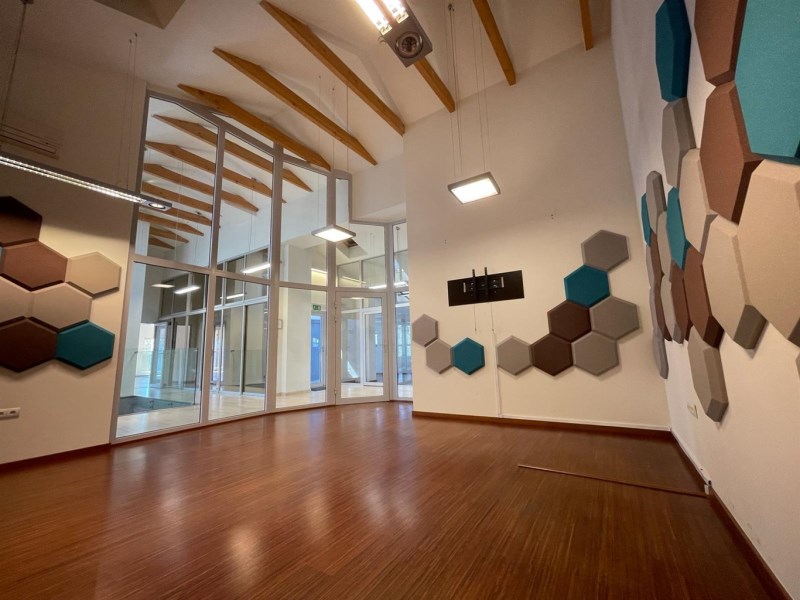 - Piętro II: 7 pomieszczeń biurowych, sala konferencyjna, pokój socjalny, WC damski oraz męski, hall, komunikacja