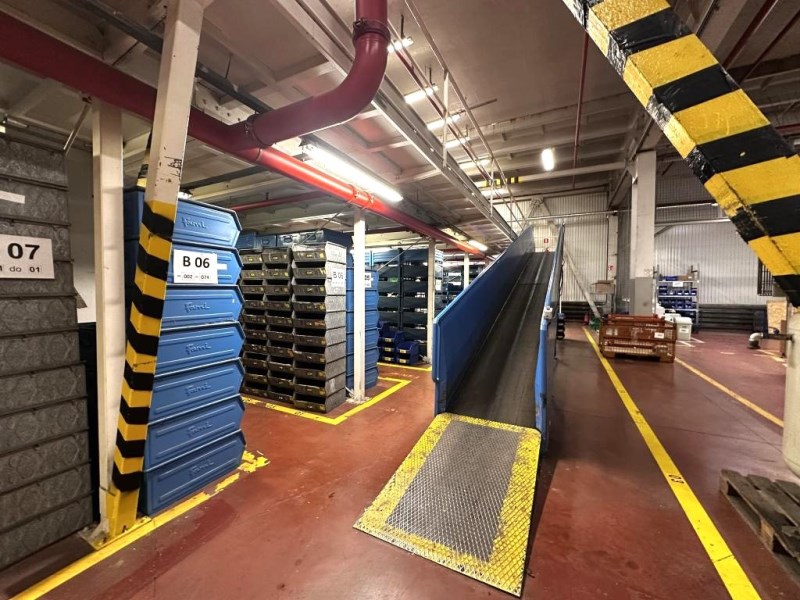 - hala wyposażona jest w dwie stalowe antresole o nośności: 0,5 t/1 mkw. (antresola wyposażona w przenośnik taśmowy pochyły);