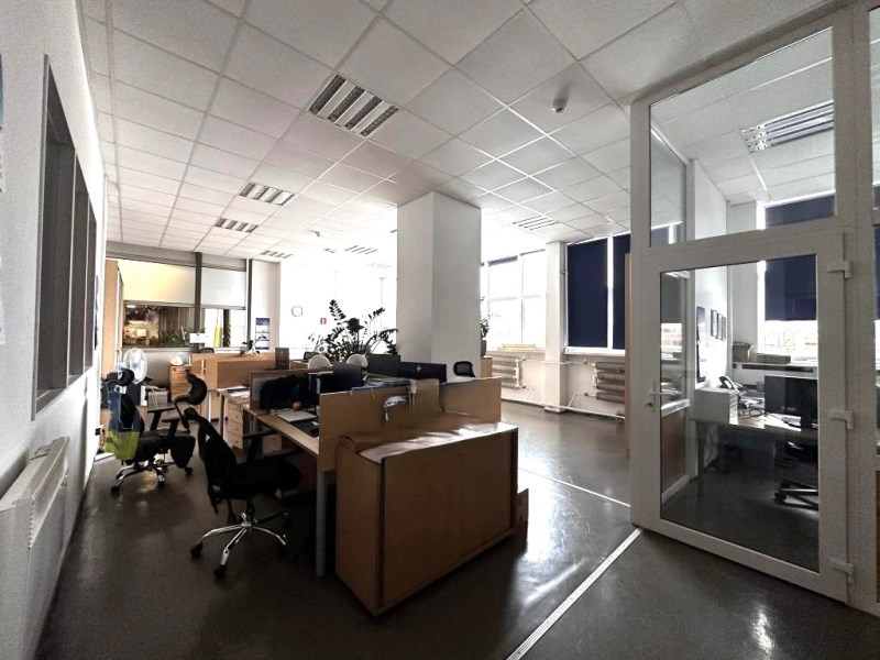 - stolarka okienna: w części produkcyjnej w ramach stalowych, w części biurowej okna PCV, dwuszybowe.