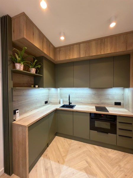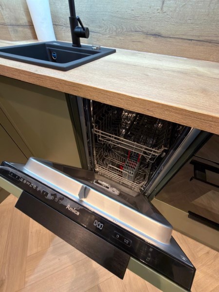 - kuchnia na wymiar wykonana przez stolarza wraz ze sprzętem AGD marki Amica