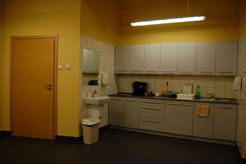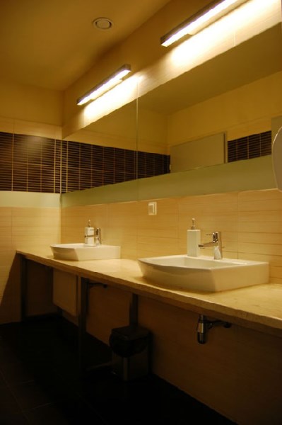 - wydzielone biura i pomieszczenia socjalne są w wysokim standardzie wykończenia z posadzkami z płytek gres, paneli podłogowych oraz glazurą na ścianach