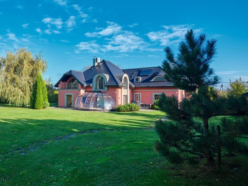 NOWOCZESNY DOM POŁOŻONY W WYJĄTKOWEJ LOKALIZACJI POD GÓRAMI Z PIĘKNYM DUŻYM OGRODEM ORAZ PRYWATNYM KORTEM TENISOWYM GOTOWY DO WPROWADZENIA LUB Z MOŻLIWOŚCIĄ ROZBUDOWY – AKTUALNE POZWOLENIE!!