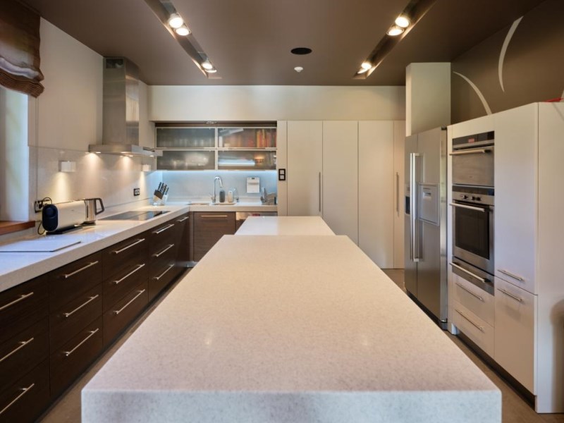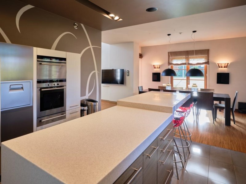 - altana grillowa wykończona kamieniem, elementami ze stali nierdzewnej; meble z drewna egzotycznego (teak); altana zasłaniana roletami z napędem elektrycznym,