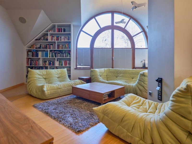 - duży hol stanowiący przestrzeń życiową na poddaszu, aneks kuchenny w bezpośrednim sąsiedztwie,