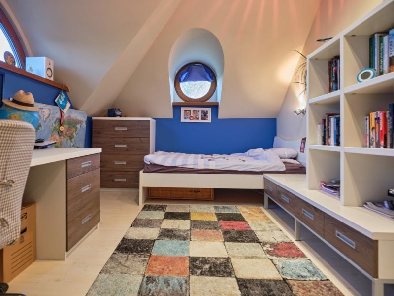 - duży, przestrzenny strych (dostępny z holu na poddaszu), wyposażony w regały do przechowywania,