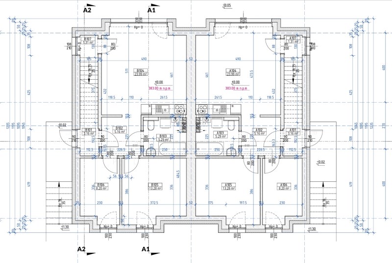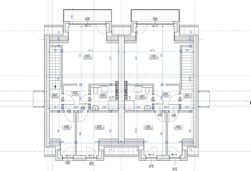Działka sprzedawana z pozwoleniem na budowę budynku jednorodzinnego dwulokalowego wg. projektu z pracowni architektonicznej ARCHIKOS o łącznej pow. użytkowej 231,64 m2, (2 x lokal mieszkalny o pow. 115,82m2) i rozkładzie pomieszczeń: