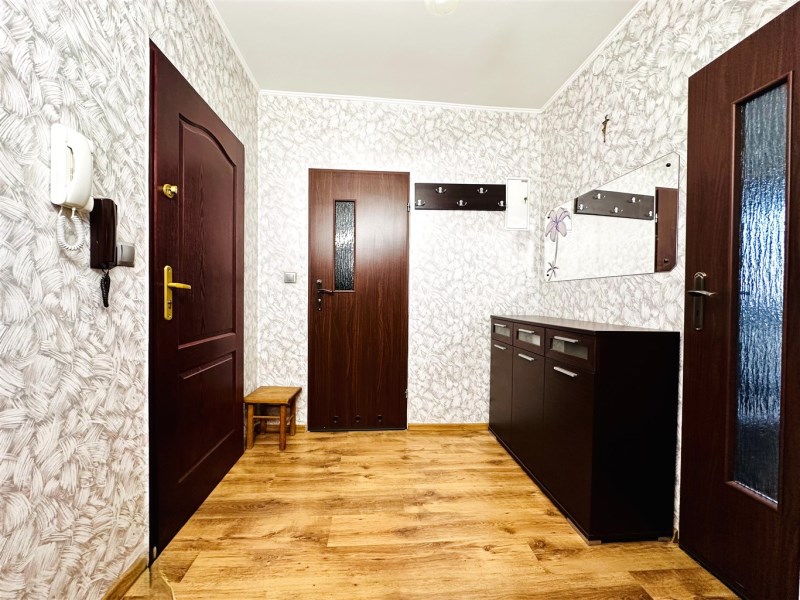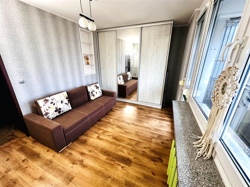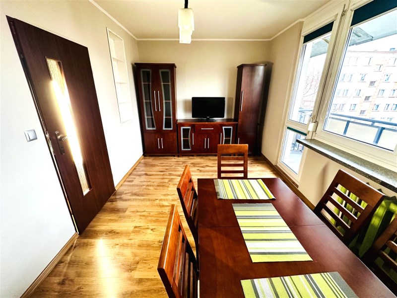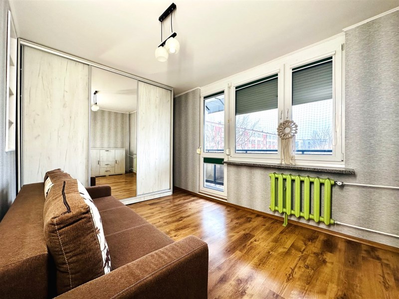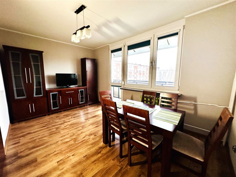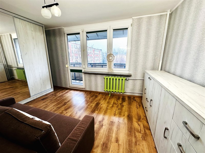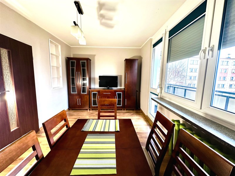 Mieszkanie umeblowane i wyposażone. Na ścianach gładzie gipsowe / malowane / tapety / płytki. Na podłogach płytki / panele; Okna z roletami wewnętrznymi oraz zewnętrznymi skierowane w kierunku zachodnim;
