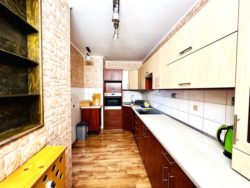 - kuchnia: zabudowa kuchenna, piekarnik, płyta indukcyjna; brak lodówki oraz zmywarki;